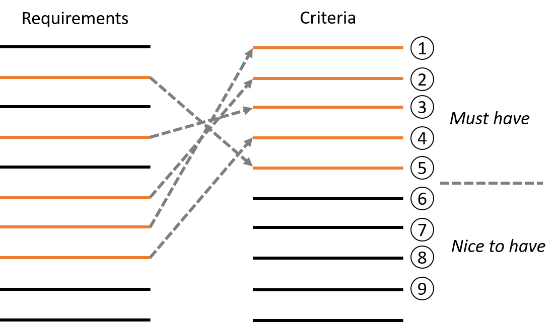 The most involved area is the Procurement area, which involves consultation to determine requirements, transforming these into prioritised criteria then setting a cut-off for essential criteria.