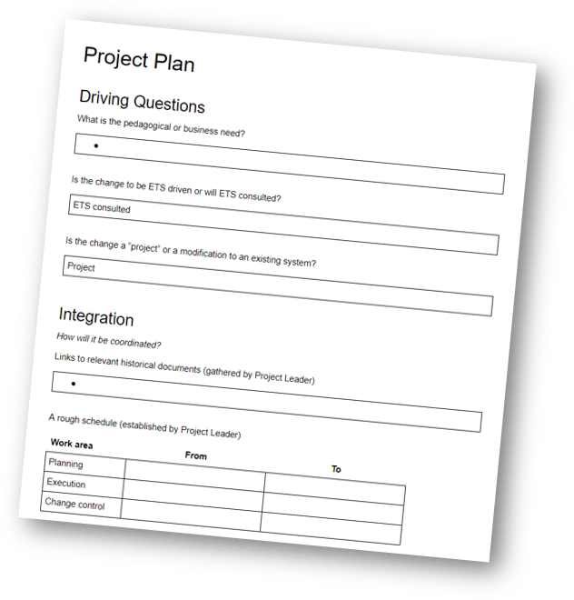 When working with a project team, a template can be used as the basis of a collaborative document to work through the planning work areas.